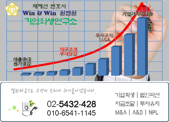 로펌 윈앤윈 | 대표자: 채혜선 | (06634) 서울특별시 서초구 서초중앙로22길 17(서초동), 메가스터디빌딩 2층TEL : 18111-428(전국대표), (02)588-8114, 010-6541-1145(긴급) | FAX : (02)6008-7116 | E-mail : hoisaeng@naver.com 광고책임 : 변호사 채혜선 | Copyright (c) 2023 로펌 윈앤윈 Fast-track기업회생연구소 All Rights Reserved.
